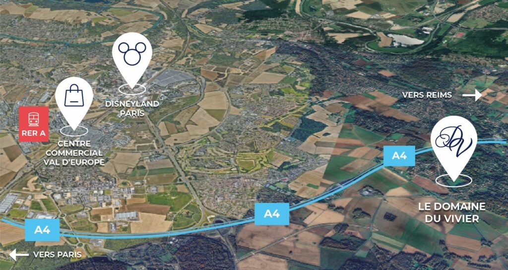 Découvrez le Domaine du Vivier, 22 terrains constructibles à vendre. Le projet se situe dans le domaine du Château du Vivier, en Seine-et-Marne, dans la commune de Coutevroult, à seulement 45 km de Paris et 10 km de Disney Land Paris, Marne la Vallée.